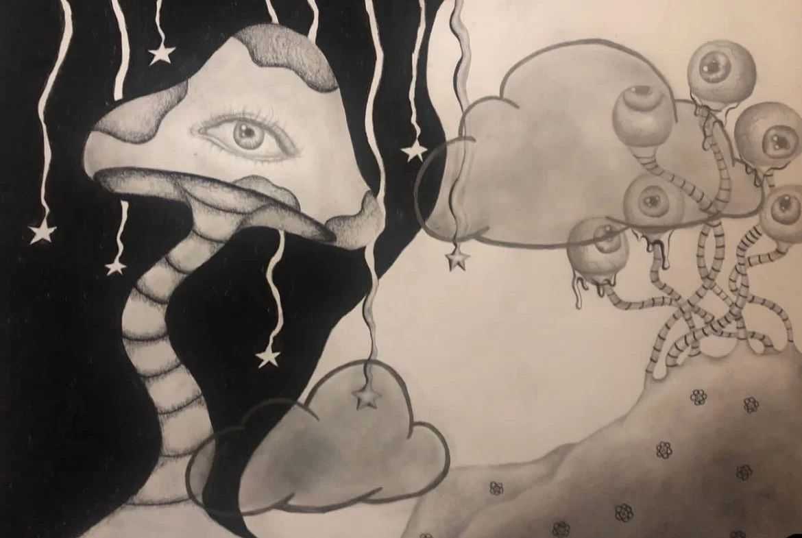This piece is to show what it feels like to be clouded by thoughts and not being able to express your true self. Having your intuition blocked not only from outside sources but also your own doing.