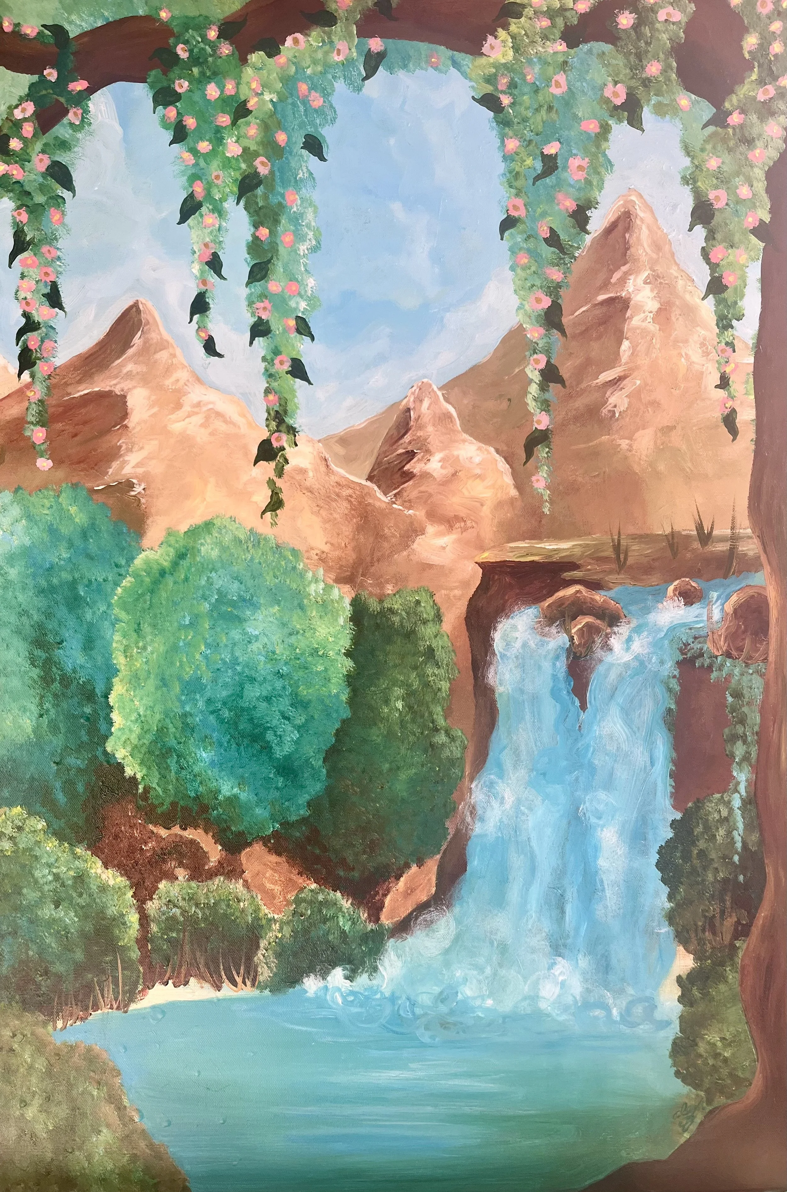 This painting is inspired from Star Wars, Naboo. I wanted to create an all landscape piece with the colors that i love using, blue and green. I felt drawn to creating the ethereal landscape that is presented here.